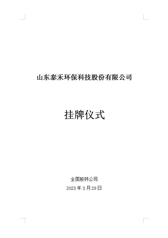 全國股轉公司擬定于2023年3月29日舉行“山東泰禾環保科技股份有限公司”掛牌儀式。